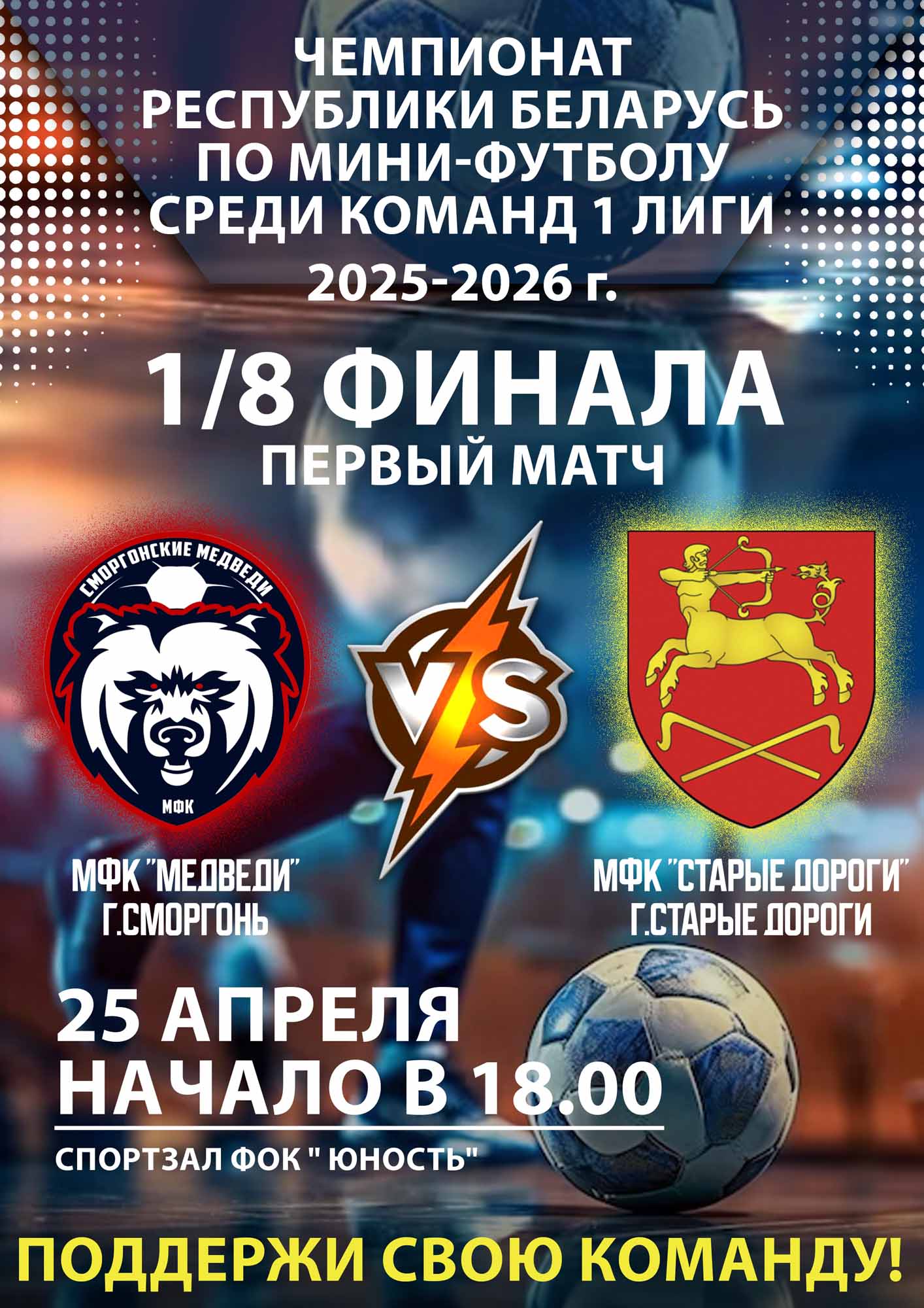 25 апреля ФОК " Юность" Начало в 18.00 Приходи поддержать свою команду!
